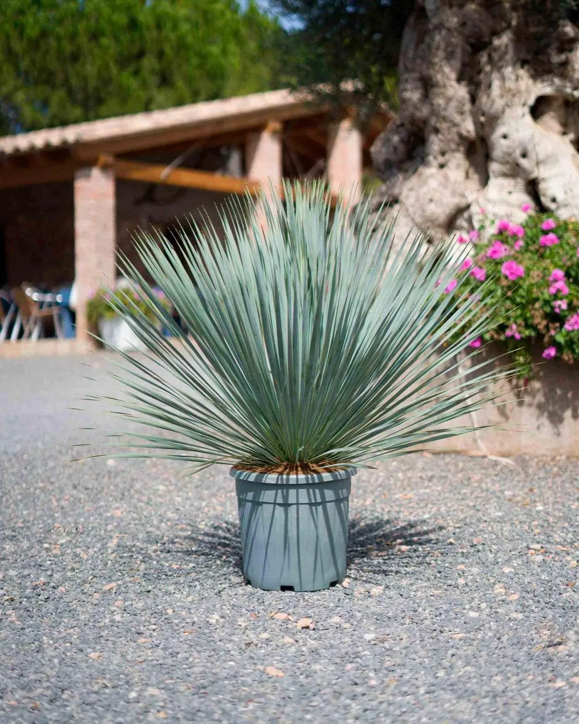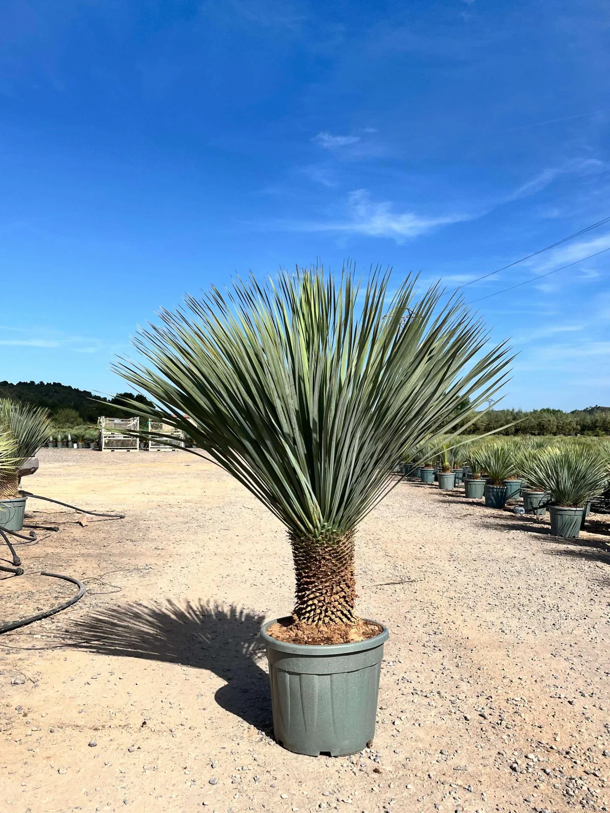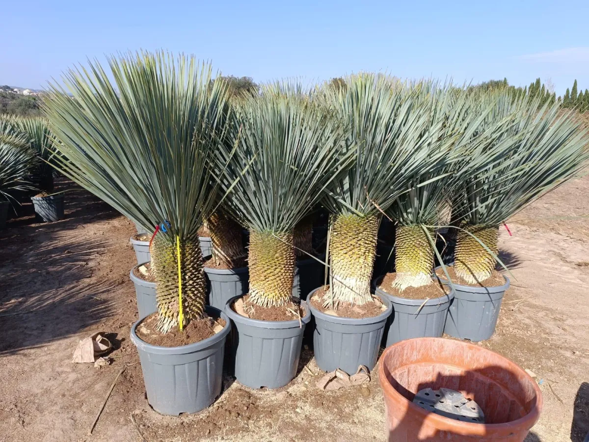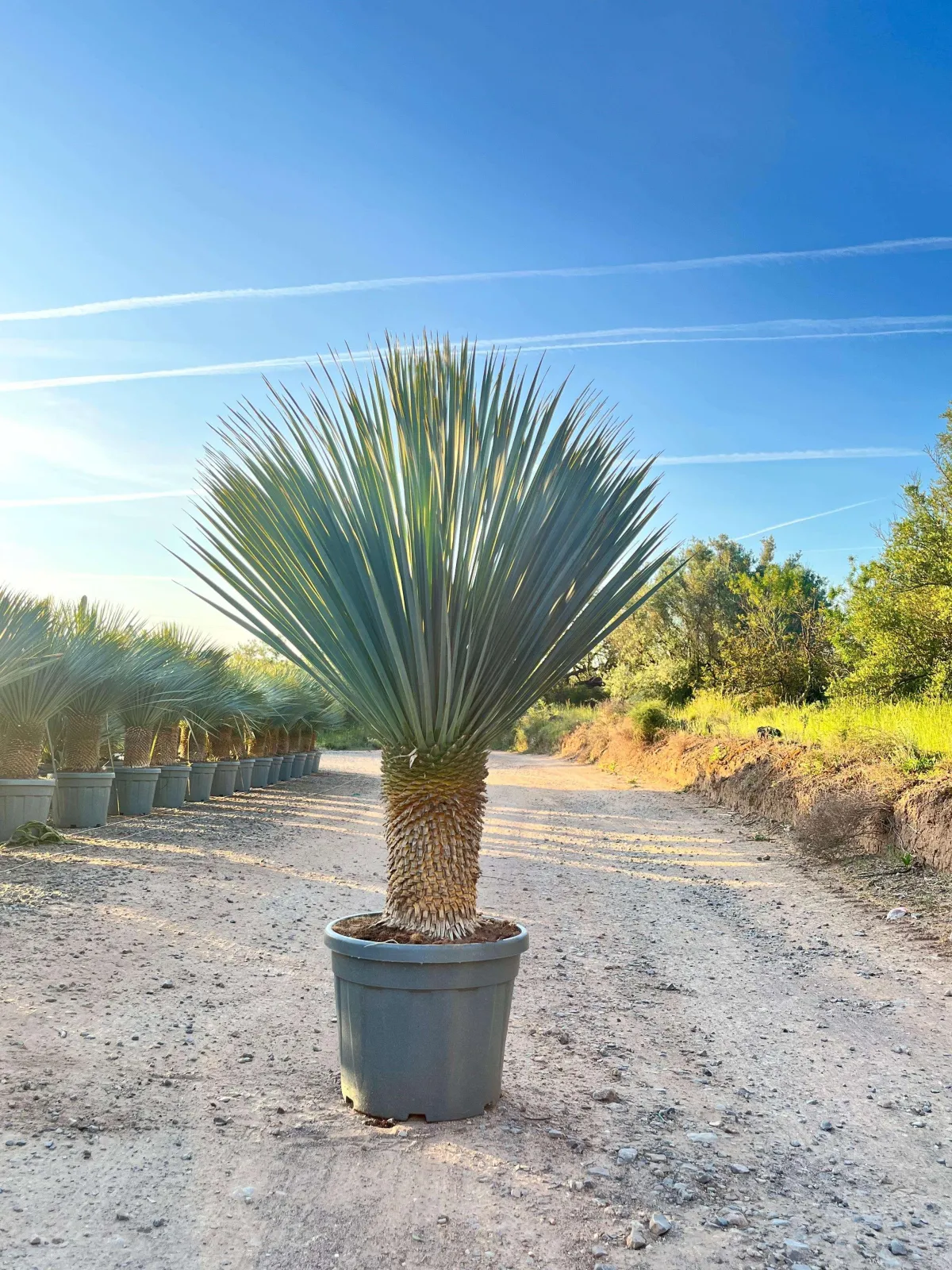 Discover our star product, the Yucca Rostrata. Known for its striking blue-green spherical canopy and remarkable resilience, it is the ultimate architectural statement for low-maintenance, water-wise gardens. At Viveros Mas de Valero, we cultivate premium specimens that bring a touch of exotic sophistication to any climate, bridging the gap between desert hardiness and contemporary luxury design.