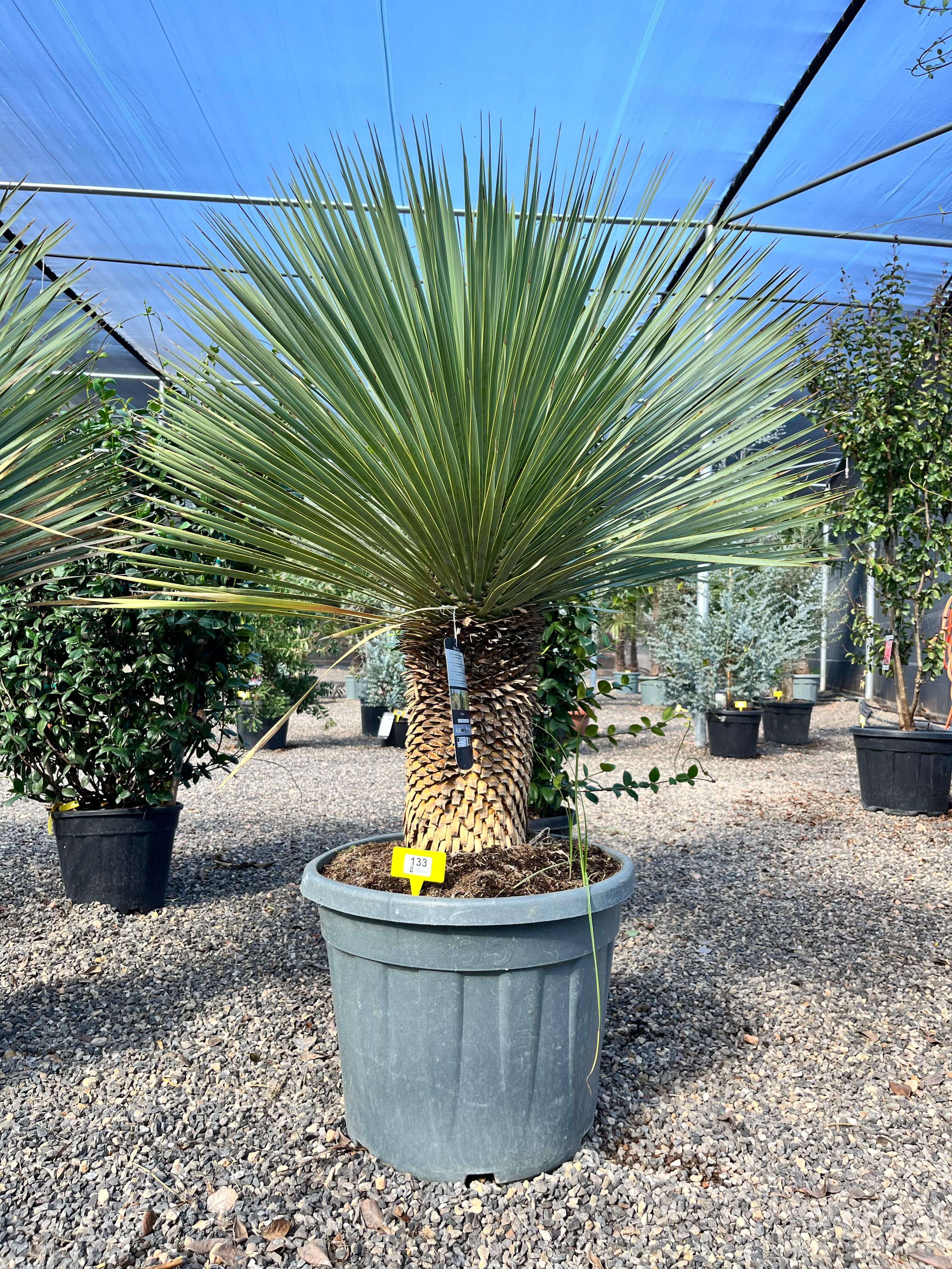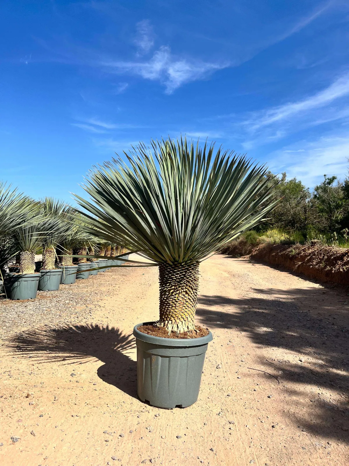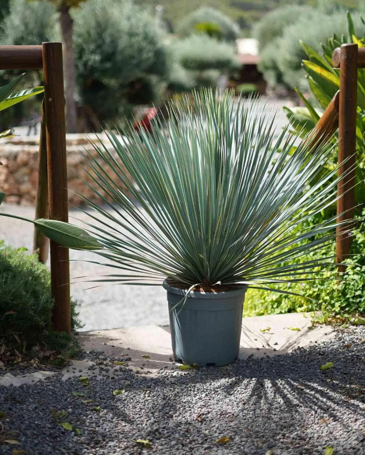 Discover our star product, the Yucca Rostrata. Known for its striking blue-green spherical canopy and remarkable resilience, it is the ultimate architectural statement for low-maintenance, water-wise gardens. At Viveros Mas de Valero, we cultivate premium specimens that bring a touch of exotic sophistication to any climate, bridging the gap between desert hardiness and contemporary luxury design.